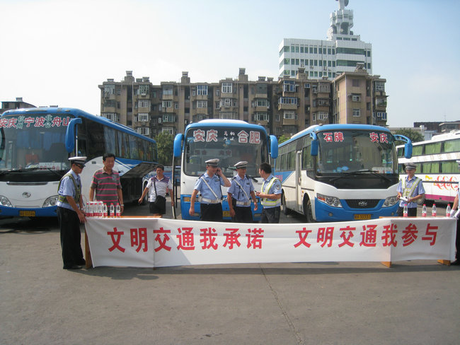 9月4日,市客運(yùn)分公司與交警支隊(duì)二大隊(duì)在安慶汽車站停車場內(nèi)開展“文明交通我承諾,文明交通我參與”駕駛員簽名活動。活動首先由交警支隊(duì)二大隊(duì)二中隊(duì)楊指導(dǎo)員宣傳5種易發(fā)生道路交通事故的不良及違法駕駛行為,楊指要求駕駛員駕駛車輛做到:不超員、不超速、不疲勞駕駛、不酒后駕駛、不無證駕駛,做文明禮讓安全行車的文明駕駛員;隨后進(jìn)行了駕駛員簽名,市客運(yùn)分公司110名未當(dāng)班的駕駛員參加了本次簽名活動。