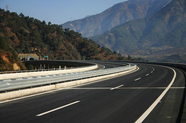 飛速車內(nèi)習習涼氣與車外秋初焦灼的熱浪形成鮮明的反差,此時此刻,我內(nèi)心真的不知道是燥熱還是涼爽?隨著車子漸行漸遠,不知不覺穿過了第一座高速隧道,這也是我首次經(jīng)歷的第一座公路隧道,隧道內(nèi)雖然不太明亮,但還是可以滿足正常通行照明的需要。因為是首次通過隧道,盡管不感到特別陰森恐懼,但還是免不了有點怯怯諾諾的失態(tài)之舉,此時的我立刻有種與世隔絕別樣的感覺,似乎太像一位沒有見過太多世面的羞澀“孩童”了!同時也喟嘆人類力量的偉大和巧奪天工的壯舉!正于一位偉人所斷言的那樣——上天可攬九月,在下可五洋捉鱉!可我還想補充一句——逢山可洞穿山神!從車窗遠望去,那高聳云端的立柱橋蹬屹立在巍峨的群山叢嶺之間,架起一條高速‘玉帶’,我情不自禁地脫口而出——一橋飛架南北天塹變通途!