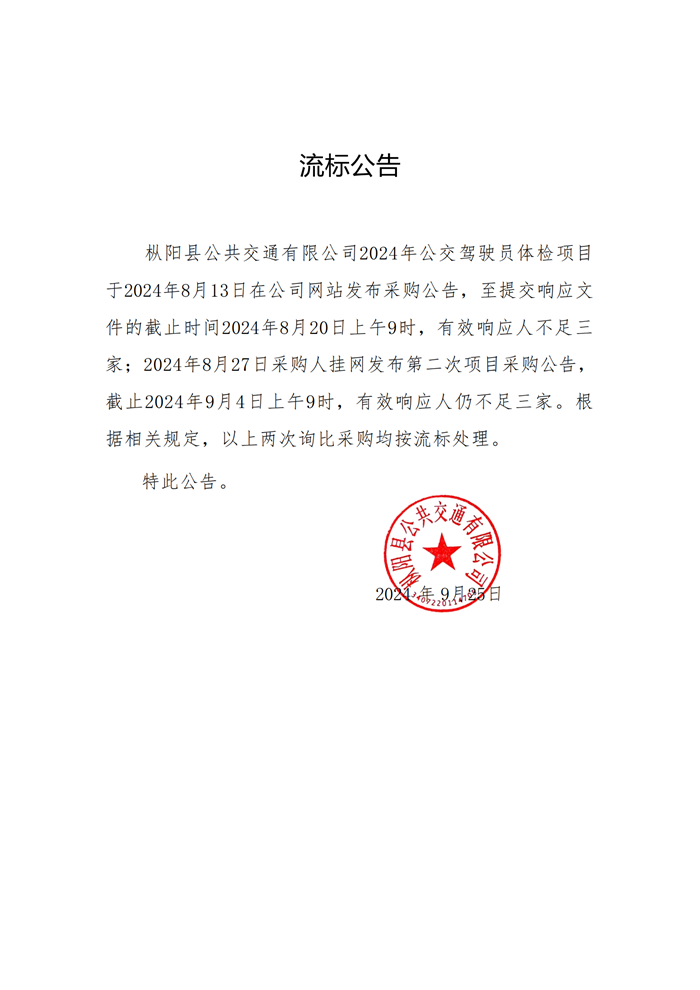 樅陽(yáng)公交駕駛員體檢項(xiàng)目流標(biāo)公告